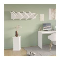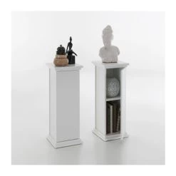 Der schicke FMD Beistelltisch mit Tür ist ein vielseitiger, säulenförmiger Tisch, der in jeder Umgebung eine gute Figur macht! Das Möbelstück verfügt über einen verstellbaren Ablageboden für kleinere persönliche Gegenstände und kann auch als Nachttisch, Telefon- oder Pflanzenständer verwendet werden. Die Tischplatte ist ideal für die Aufbewahrung von dekorativen Gegenständen wie Vasen, Fotorahmen oder Ihren Lieblingsbüchern. Der stilvolle Beistelltisch besteht aus melaminbeschichteter Spanplatte in dezentem Weiß, die zu fast jedem Einrichtungsstil passt.