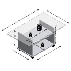 Er hat ein schlankes Design mit 2 großen Ablageböden unter der Tischplatte, wo Sie Ihre Zeitschriften, Bücher und Fernbedienungen in Reichweite aufbewahren können. Zusätzlich verfügt er über 4 Rollen für eine komfortable Handhabung.