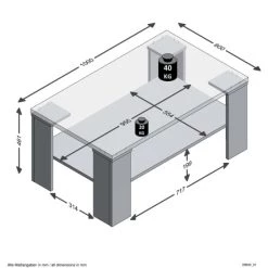 - Obere Ablage ist mit bis zu 40 kg, die untere mit bis zu 20 kg belastbar