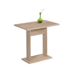 Dieser Wohnzimmertisch von FMD besteht aus strapazierfähiger, melaminbeschichteter Spanplatte in dezenter Eichenfarbe, die zu jedem Einrichtungsstil passt.