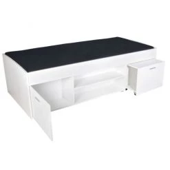 Die zahlreichen Ablageflächen sowie ein integrierter Nachttisch sorgen für viel Stauraum