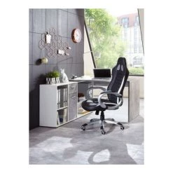 – 1x FMD furniture Winkel-Schreibtischkombination in Beton Light Atelier/Weiß
