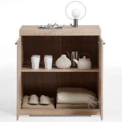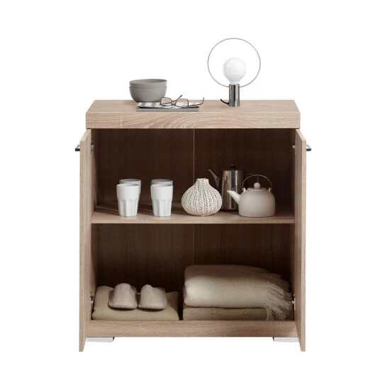 Das Möbelstück weist ein schlankes, elegantes Design auf; hinter den beiden Schranktüren verbirgt sich jede Menge Stauraum für Schuhe, Kleidungsstücke, Geschirr, Küchen-Utensilien, Bücher, DVDs und andere Medienträger sowie für Akten und Bürozubehör. Ein unverzichtbarer Helfer beim Ordnen und Organisieren im Kinderzimmer, Schlafzimmer, Esszimmer oder Home-Office.