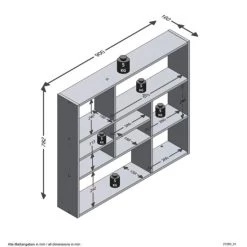 Große zweifarbige Bibliothek mit einer Wandhalterung von 98 x 78 cm Höhe – Kann dank ihrer Tiefe von 19,5 cm in 9 Fächern Ihre Objekte und Bücher aufnehmen. – Sie besteht aus Melaminplatten, die vor Kratzern und Feuchtigkeit schützen. – Schwarz Handwerkereiche.