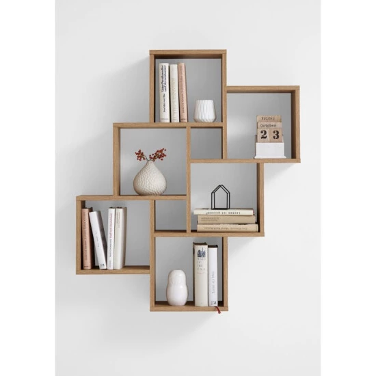 2 Laurio Wandregalfächer 6 bis 81,5 x 94,5 x 16 cm – Melamine Panel – Old Oak Nachbildung