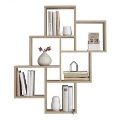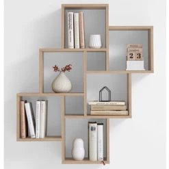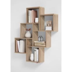 Sehr schönes Wandregal Laurio in Sonoma Eiche Nachbildung. Ausgestattet mit sechs groĂen und zwei kleinen FĂ€chern, bietet das Regal zusĂ€tzliche StauraumflĂ€che in Ihrem Wohnzimmer.