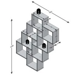 Dieses Wandregal von FMD ist ein modernes Hängeregal, bestehend aus 8 großen und 3 kleineren Fächern, die in einem spielerischen Muster angeordnet wurden. Dies erzeugt einen skurrilen und äußerst dekorativen Effekt, wenn Sie das Regal mit Ihren Lieblingsbüchern und anderen Dekoartikeln füllen: Jede Wand verwandelt sich in einen echten Hingucker! Dieses unverwechselbare Wandregal von FMD ist aus strapazierfähiger, melaminbeschichteter Spanplatte in einer raffinierten weißen Farbe hergestellt. Das Wandregal fügt sich perfekt in die verschiedensten Einrichtungsstile ein!