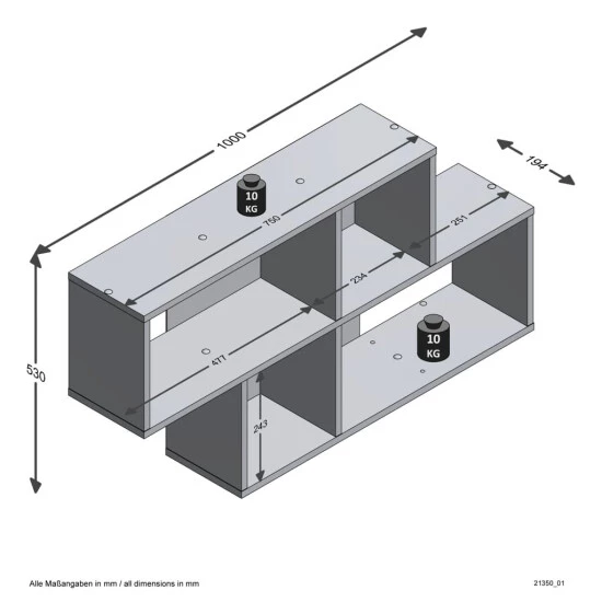 - Tragfähigkeit: 10 kg x 3 + 5 kg x 3