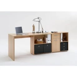 Variable Organisationstalente – nur _ 229,- / Flexibler und robuster Schreibtisch und Drehregal – Diese Schreibtischkombination “Alumnus” vereint praktisches Design mit moderner Optik. “Alumnus” besteht aus einem großen Schreibtisch (L 136 x T 68 x H 75 cm) mit einer kurzen Rückenblende und einem Regal (H 71 x B 137 x T 33 cm) mit vier Fächern, einer Schublade und einer Tür. “Alumnus” können Sie zu einer geraden Arbeitsfläche aufstellen (Gesamtlänge: 206 cm), das Regal wahlweise rechts oder links montieren oder in eine Winkelkombination verwandeln.