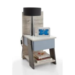 FMD Nachtkonsole mit 1 SK NONA 3 Sandeiche Nb/weiß/Lava/Denim; 814-003